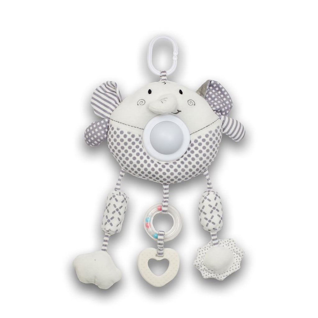 Krásná barevná závěsná plyšová hračka Baby Mix pro miminka. Hračka má barevná kousátka a plastový klip na uchycení hračky ke kočárku, po natáhnutí vibruje, svítí a hraje příjemné zvuky. Výška cca 22 cm. Vhodné pro děti od prvních dnů života.