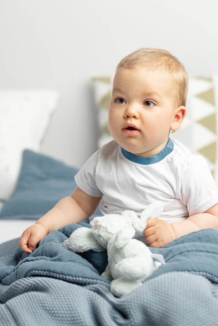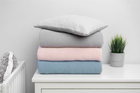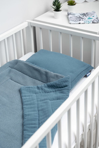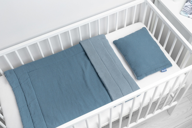 Sada do postýlky je kombinací mušelínu nejvyšší kvality na jedné straně a bavlněné příze na straně druhé. Výsledkem této kombinace je elegantní souprava, která v sobě spojuje třídu, kvalitu a praktičnost. Souprava je vhodná jak pro teplé letní dny, tak pro chladnější zimu. Skládá se z oboustranného plochého polštáře a přikrývky s antialergickou výplní. Rozměry byly zvoleny tak, aby se perfektně hodily do dětské postýlky, nosítka nebo kolébky, nebo se dokonce staly "oblíbenou dekou" pro použití v kočárku. 30x40 cm