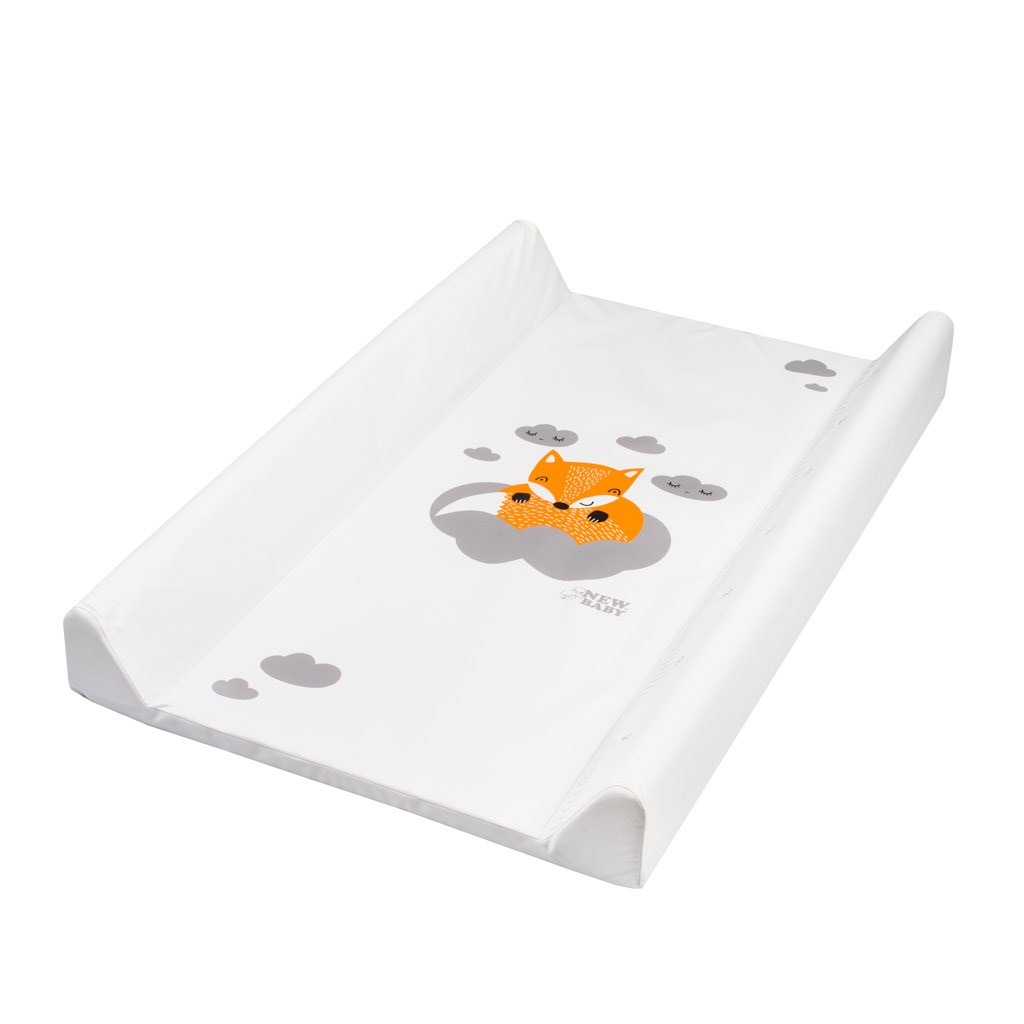 Praktický tvarovaný přebalovací nástavec s moderním dizajnem New Baby Liška z nepromokavého, plastového materiálu s obrázkem lišky a obláčků. Produkt české značky. Nástavec je vyplněn polyesterem a má vyvýšené boční strany. Nástavec má spodní tvrdou desku, lze ho přišroubovat na postýlku nebo umístit na přebalovací stojan. Je vyroben z nejkvalitnější certifikované fólie, která neobsahuje žádné škodlivé látky a je citlivá k nejjemnější dětské pokožce. Vynikající pomocník při přebalování a oblékání miminka. Rozměr: cca 50x80 cm, tloušťka cca 2,5 cm, výška hran 8,5 cm.