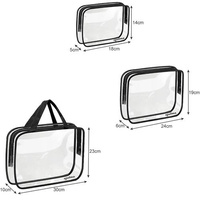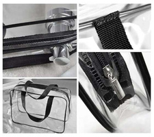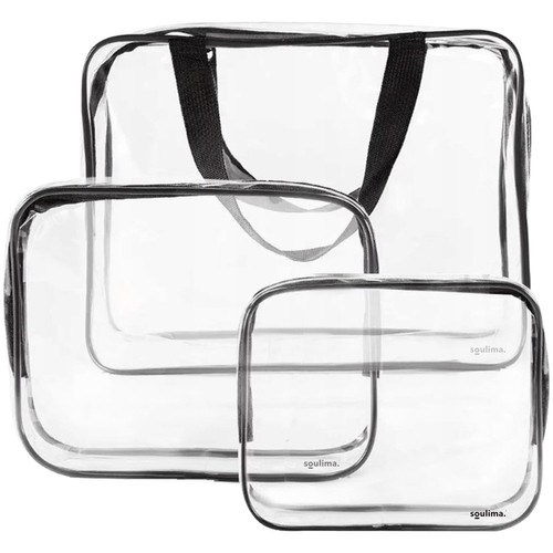 Sada našich kosmetických taštiček na zip vám pomůže snadno uspořádat všechny toaletní potřeby nebo make-up a zorganizovat váš zavazadlový prostor. Každá taštička má jiné rozměry, takže jejich využití můžete přizpůsobit svým potřebám a efektivněji využít místo v kufru. Průhledný materiál umožňuje kontrolu obsahu bez otevírání, což je obzvlášť praktické na letištích. Voděodolnost zaručuje, že obsah zůstane uvnitř a nepoškodí ostatní zavazadla. Největší taštička má pohodlné úchyty, díky nimž ji lze nosit jako kabelku. Ideální na dovolenou, krátké výlety, do posilovny, na bazén, trénink i pro domácí použití.