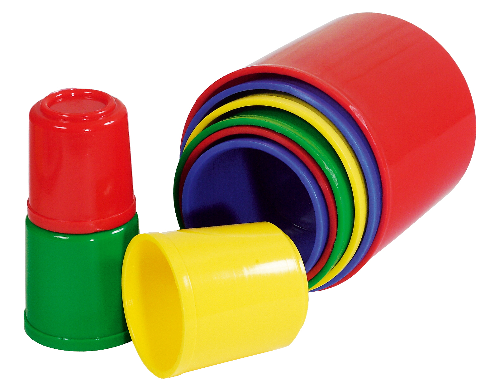 pyramida se skládá ze setu různě velkých a různě barevných kelímků