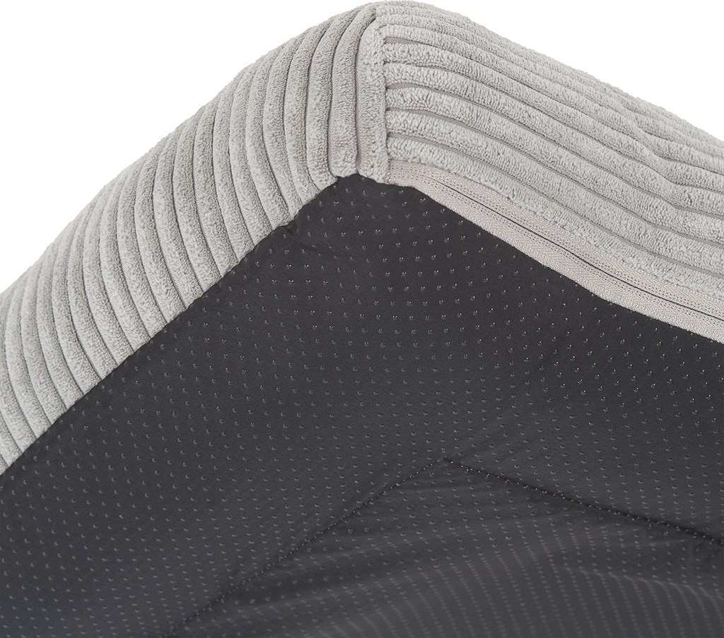 Potah je vyroben z měkkého a na dotek příjemného manšestru, který je pevný a zároveň odolný proti oděru a oděru. Dno podšité protiskluzovou tkaninou navíc poskytuje velmi dobrou přilnavost a ztěžuje nežádoucí pohyb pelíšku na podlaze.