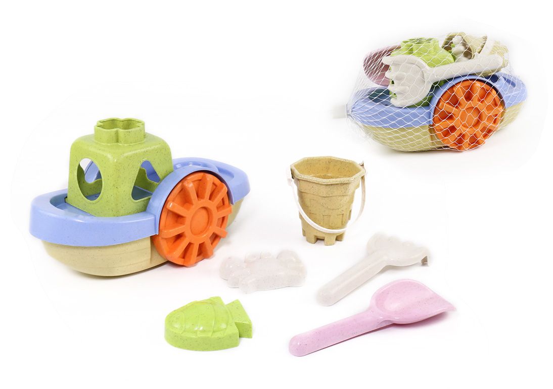 Sada na písek 6 ks. Součástí loď, kbelík, lopatka, hrabičky, 2 formičky.