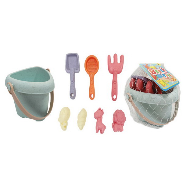 Sada na písek 8 ks. Obsahuje kyblík, lopatku, hrabičky, sítko, 4 formičky. Více variant formiček.