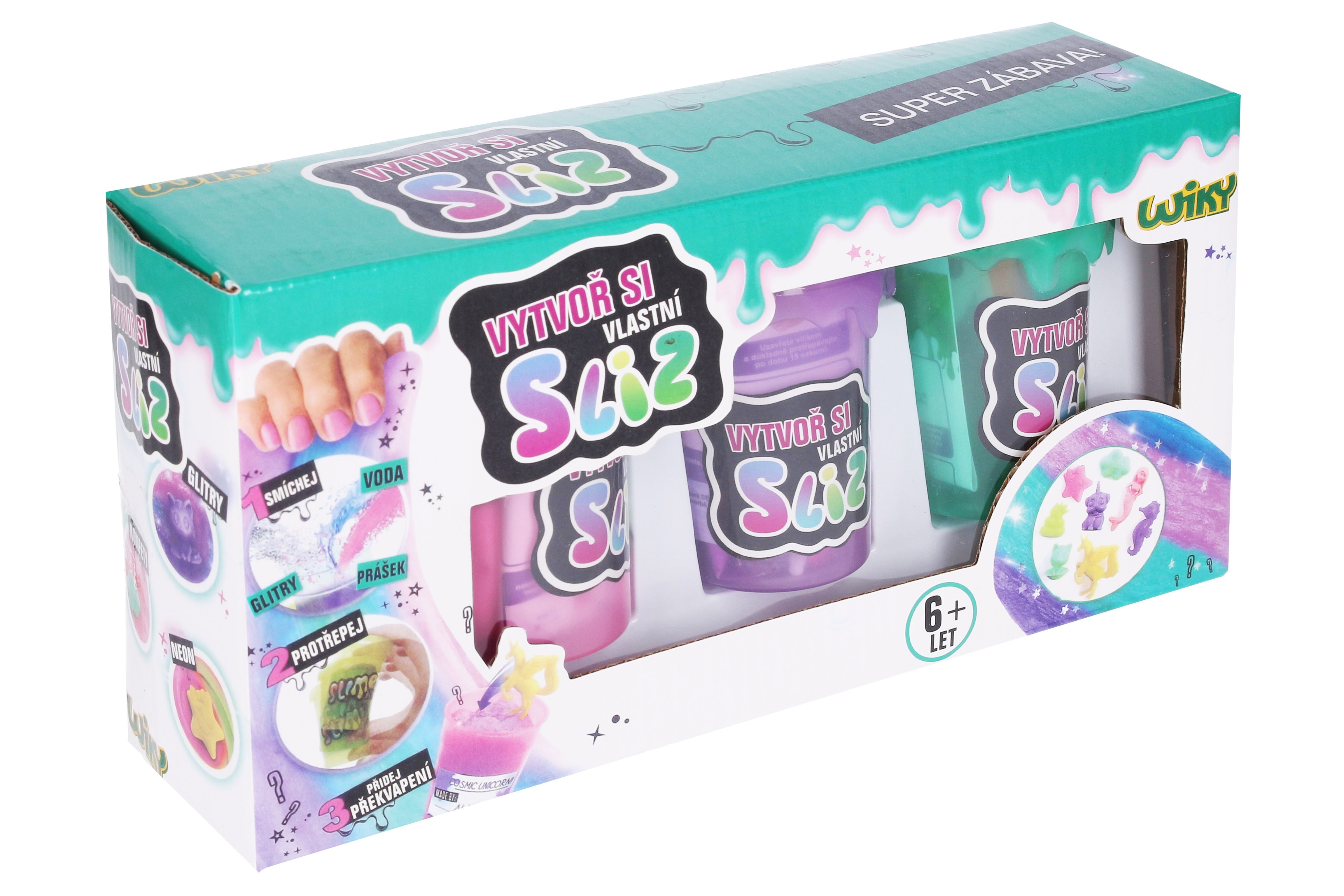 Jednoduchá výroba slizu pomocí několika jednoduchých kroků - nasypte do kelímku prášek, přidejte třpytky a figurku. Nalijte vodu, poté kelímek zavřete a důkladně protřepejte. Počkejte pár minut a sliz je hotový!
