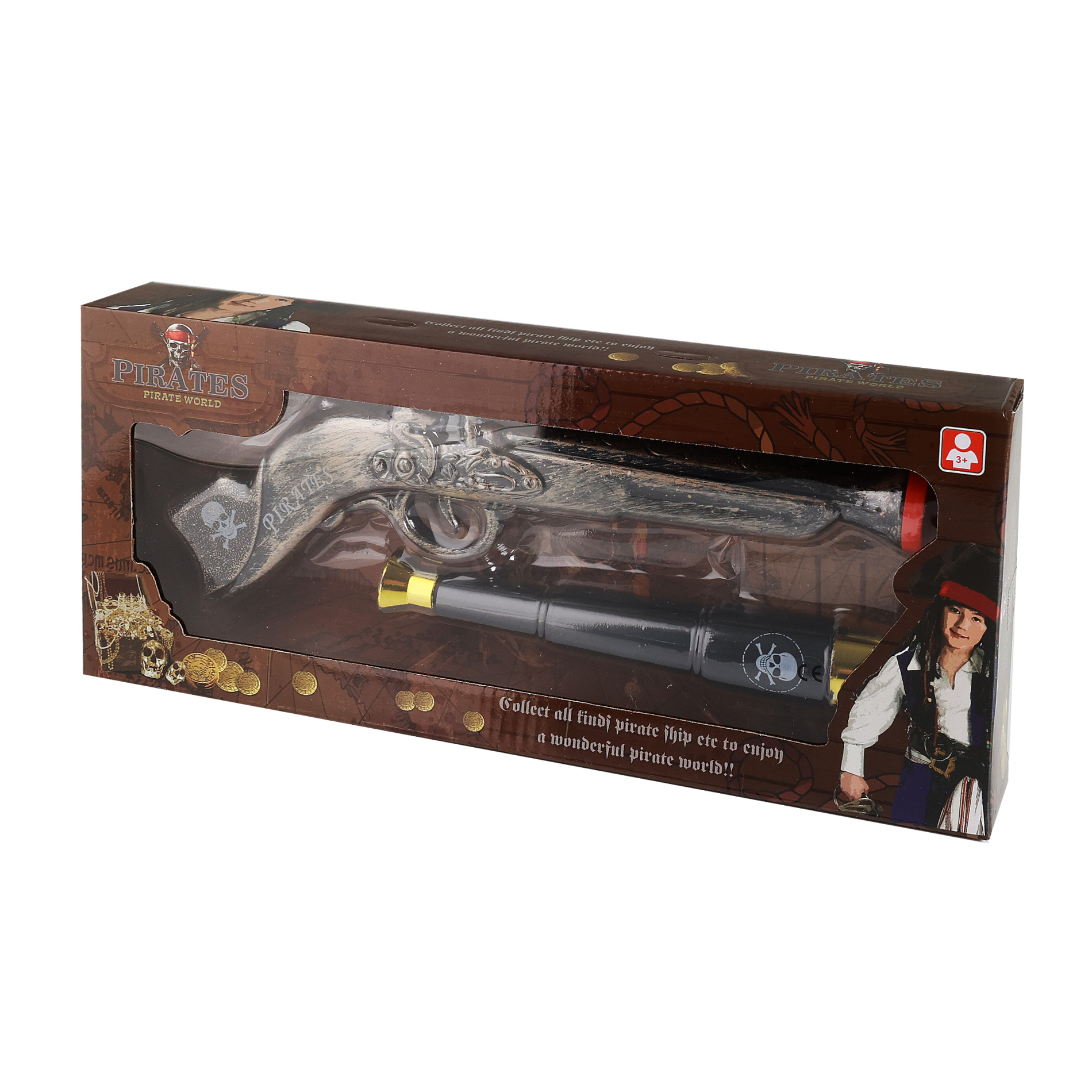 Staň se opravdickým pirátem díky těmto senzačním doplňkům! Balení obsahuje pušku a pirátský dalekohled. Vše je vyrobeno z PVC a baleno v krabici.