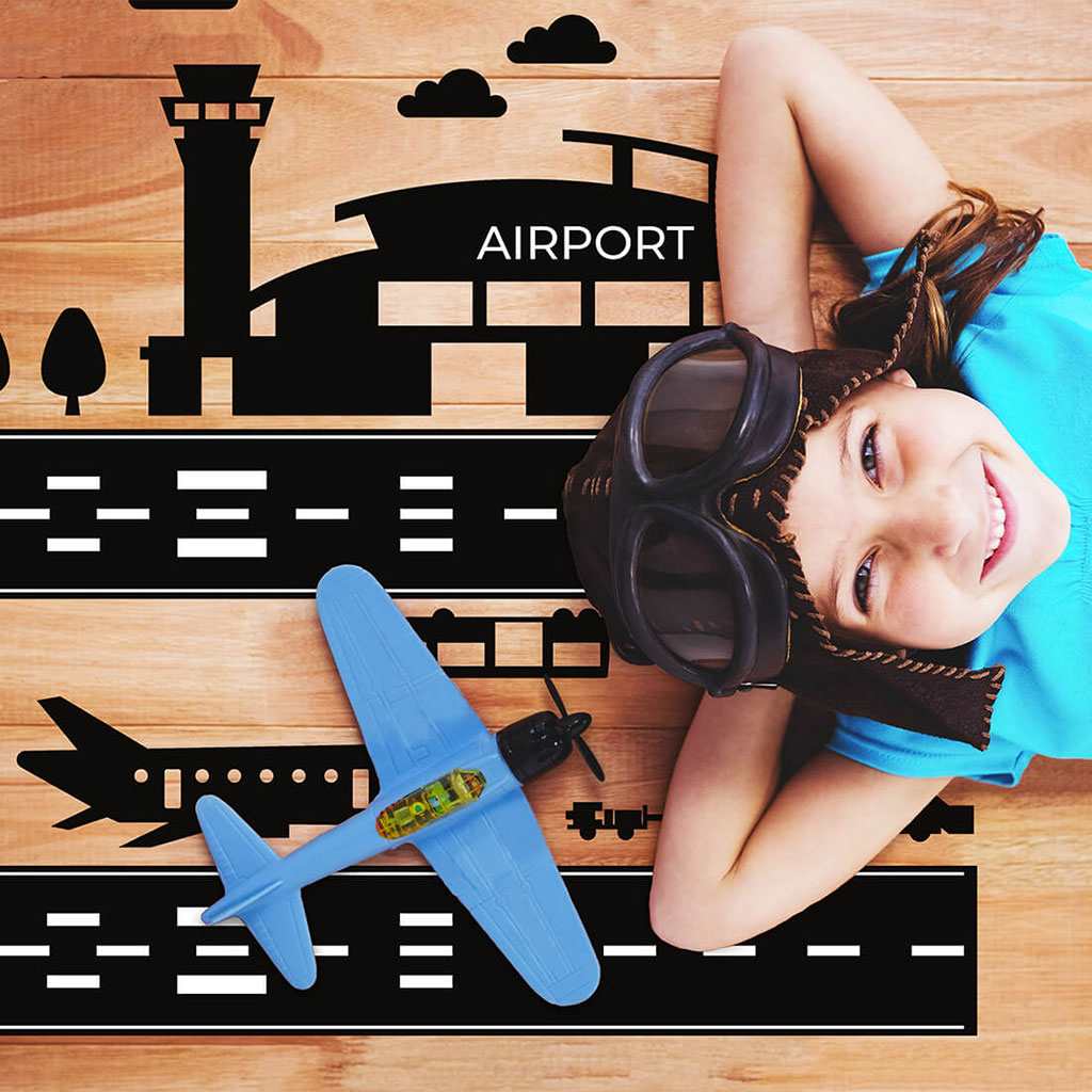 Krásná nálepka na podlahu Letiště. Letištní podlahový ticker byl vytvořen pro fanoušky nebeských dobrodružství. Vždyť kdo v našem dětství nechtěl být pilotem :). Pomáháme plnit tyto sny a zároveň zaručujeme nadpozemskou zábavu, aniž bychom zabírali zbytečné místo v dětském pokoji. Náš produkt je jedinečný a jediný svého druhu. Vyrobeno ze speciální fólie a matného laminátu, díky kterému je jeho povrch odolný a nesmazatelný. Samolepka je vhodná na podlahu, ale lze ji aplikovat i na jakýkoli jiný hladký povrch, jako jsou stěny nebo nábytek. Nečekejte déle. Dopřejte svému dítěti mimořádnou zábavu a zkraťte si čas na úklid. Tato sada obsahuje: letiště (90x77 cm) a doplňkové prvky. Přesné rozměry jsou uvedeny na poslední fotce.