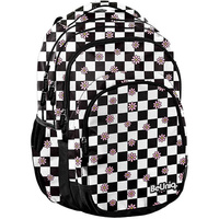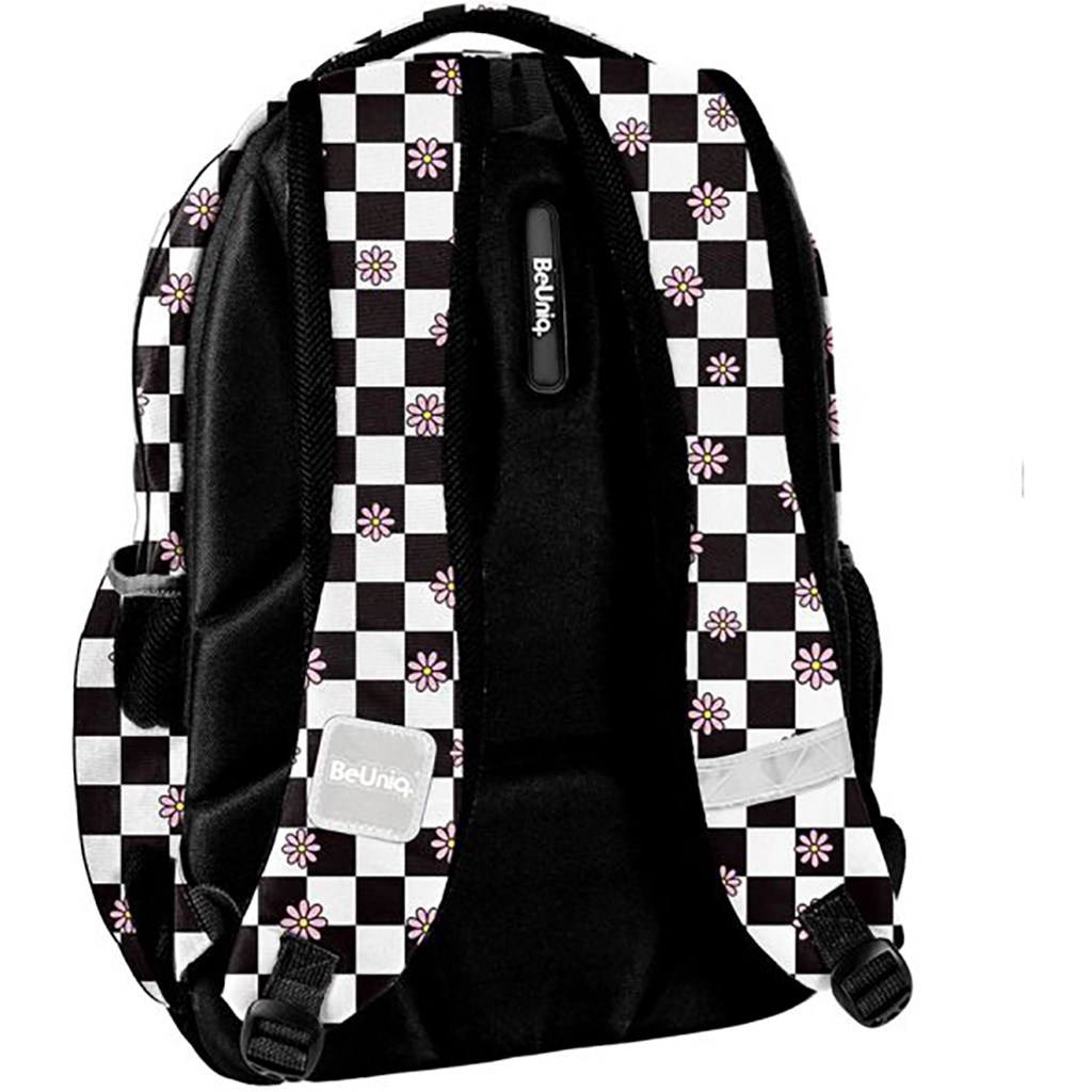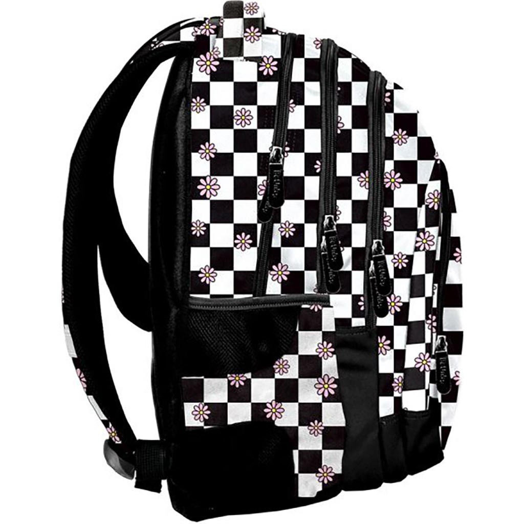 Školní batoh pro mládež. Tři prostorné přihrádky, přední kapsa s organizérem a dvě boční kapsy ze síťoviny a látky. Zesílená, tvarovaná záda z evafoanu a měkké, pohodlné ramenní popruhy. Zesílené a vyztužené dno. Pohodlné ucho pro nošení a poutko na zavěšení. Hlavní přihrádka obsahuje přihrádku na notebook a druhá přihrádka má organizér s kapsou na zip a klipsem na klíče. Reflexní prvky pro větší bezpečnost. Rozměry: 41x31x16cm.