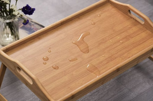 Stabilní konstrukce – pevné bambusové nohy a rám zajišťují, že stolek se při použití nekýve.