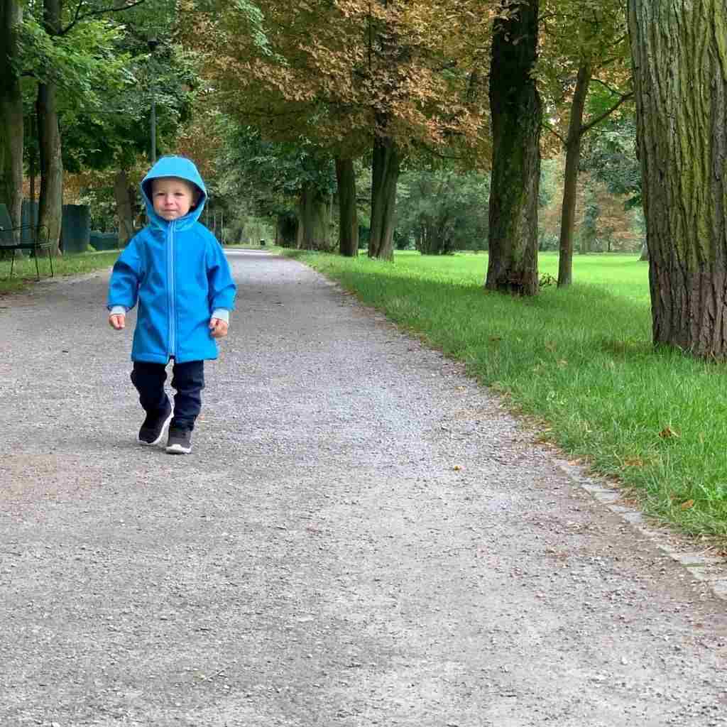 Nápaditá softshellová kojenecká bundička New Baby. Bundička je vyrobena v České republice z kvalitního materiálu softshell. Materiál je hladký, elestický, měkký a příjemný na dotek. Do určitého stupně je také voděodolný, nenasakuje vodu a je odolný vůči znečištění. Praktické zapínání na zip po celé délce velmi usnadní oblékání a přebalování. Zip je po celé délce podšitý látkou, a tím je zamezeno profukování větru na pokožku miminka. Bunda má praktickou kapuci, širší pružné lemy na rukách a v pase a celá vnitřní strana je zateplená krátko střiženým polarem, který zvyšuje komfort nošení a zajišťuje teplo. Na rukávcích jsou našité reflexní paspulky. Softshellová bundička je vhodná jako sportovní oblečení, je odolná větru a zároveň prodyšná. Miminko se bude cítit velmi pohodlně a příjemně.