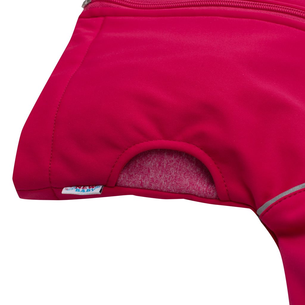Nápaditá softshellová kojenecká bundička New Baby. Bundička je vyrobena v České republice z kvalitního materiálu softshell. Materiál je hladký, elestický, měkký a příjemný na dotek. Do určitého stupně je také voděodolný, nenasakuje vodu a je odolný vůči znečištění. Praktické zapínání na zip po celé délce velmi usnadní oblékání a přebalování. Zip je po celé délce podšitý látkou, a tím je zamezeno profukování větru na pokožku miminka. Bunda má praktickou kapuci, širší pružné lemy na rukách a v pase a celá vnitřní strana je zateplená krátko střiženým polarem, který zvyšuje komfort nošení a zajišťuje teplo. Na rukávcích jsou našité reflexní paspulky. Softshellová bundička je vhodná jako sportovní oblečení, je odolná větru a zároveň prodyšná. Miminko se bude cítit velmi pohodlně a příjemně.