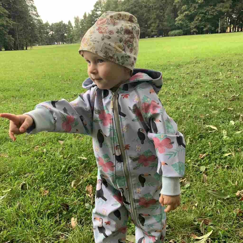 Nápaditý softshellový kojenecký overal New Baby. Overal je celopotištěný dětským vzorem. Overálek je vyroben v České republice z kvalitního materiálu softshell. Materiál je hladký, elestický, měkký a příjemný na dotek. Do určitého stupně je také voděodolný, nenasakuje vodu a je odolný vůči znečištění. Praktické zapínání na zip po celé délce velmi usnadní oblékání a přebalování. Zip je po celé délce podšitý látkou, a tím je zamezeno profukování větru na pokožku miminka. Kombinéza má praktickou kapuci, širší pružné lemy na rukách a nohavičkách a celá vnitřní strana je zateplená krátko střiženým polarem, který zvyšuje komfort nošení a zajišťuje teplo. Na rukávcích jsou našité reflexní paspulky. Softshellový overálek je vhodný jako sportovní oblečení, je odolný větru a zároveň prodyšný. Miminko se bude cítit velmi pohodlně a příjemně.