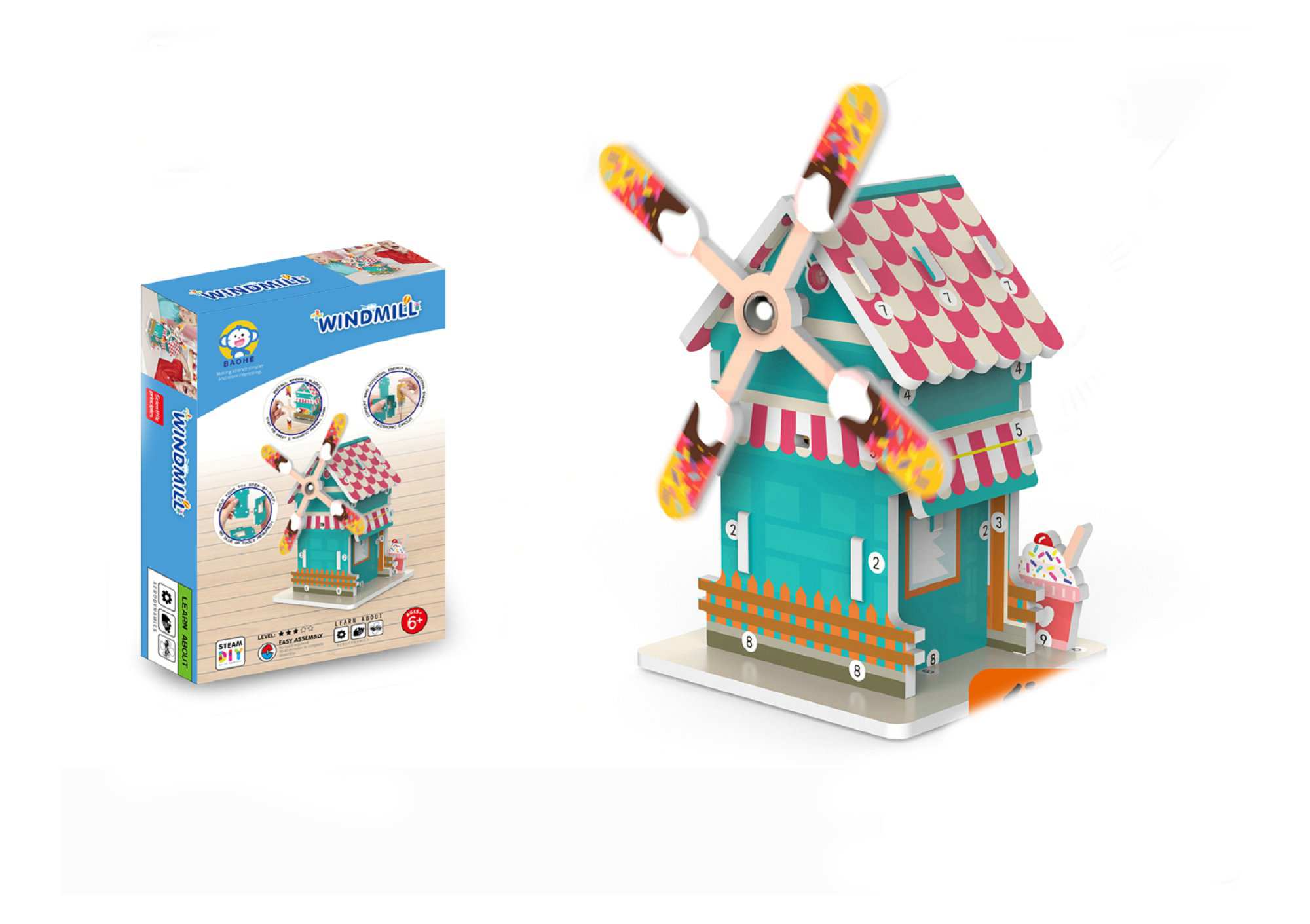 Stavebnice větrný mlýn. 2xAA baterie nejsou součástí.