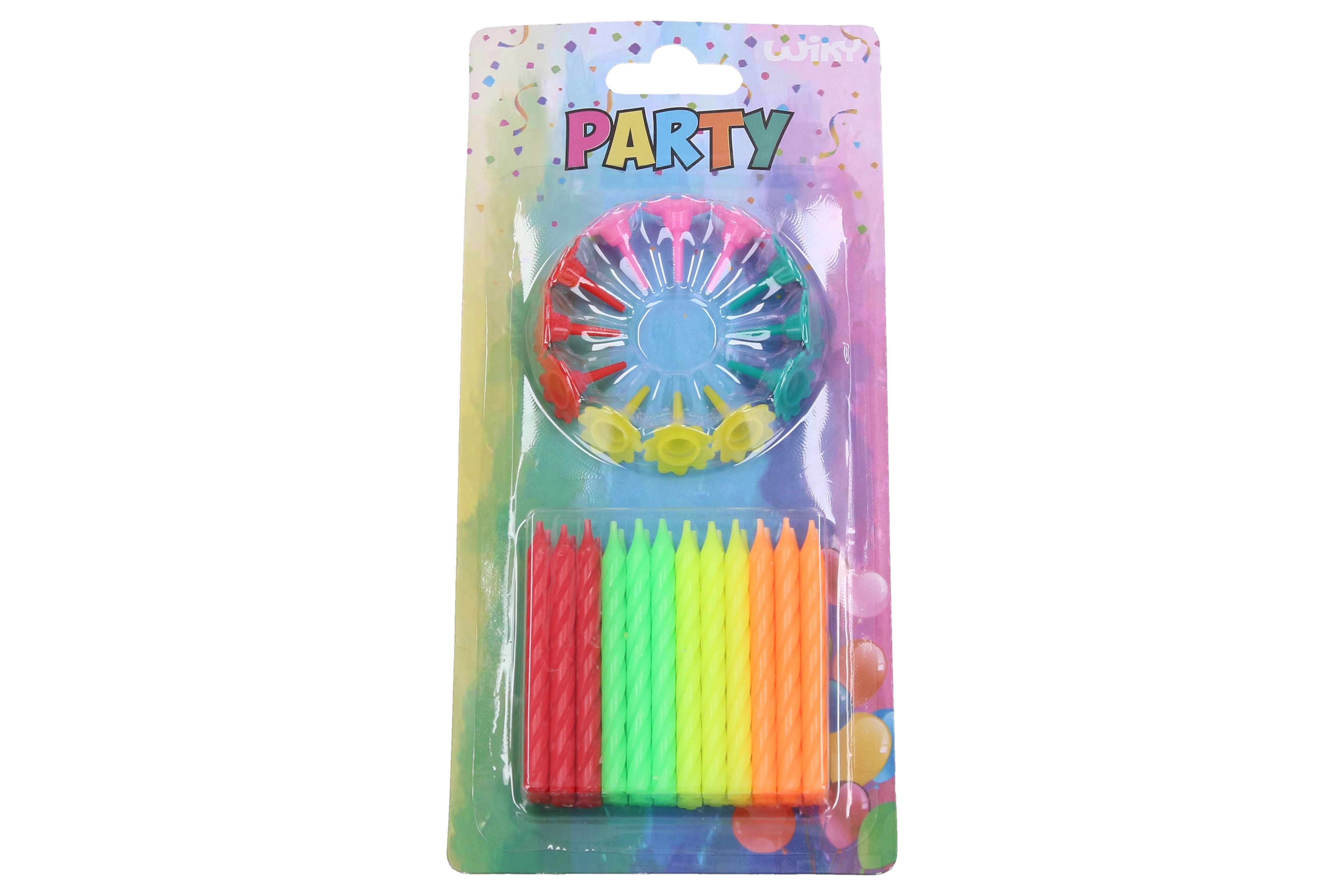Barevné party svíčky - balení 24 svíček + 12 stojánků