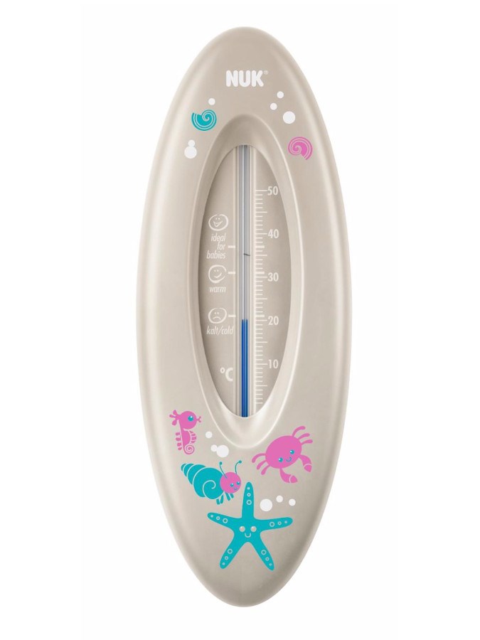 Barevný plovoucí teploměr NUK do vaničky. Ideální teplota pro Vaše dítě je označená na teploměru a je 36,9°C (dávejte pozor, aby teplota nepřesáhla 37°C), teplota vzduchu během koupání by měla být kolem 20°C – 22°C. Díky ukazatelům Cold, Warm a Ideal for babies lze ideálně přizpůsobit teplotu vody potřebám miminka. Vyroben z kvalitních a bezpečných materiálů. Zřetelné vyznačení teploty. Náplň tvoří neškodný řepkový olej.