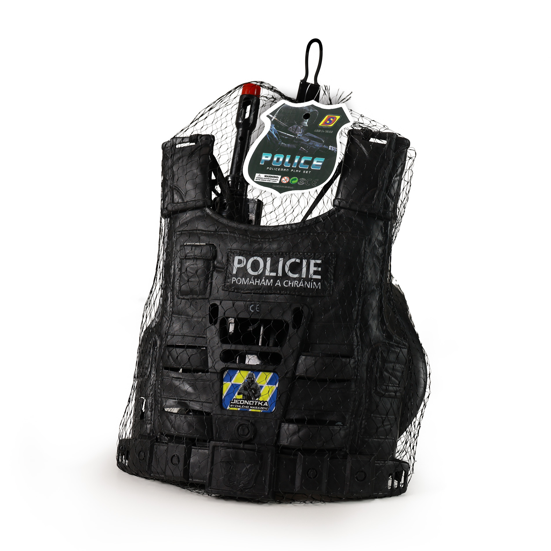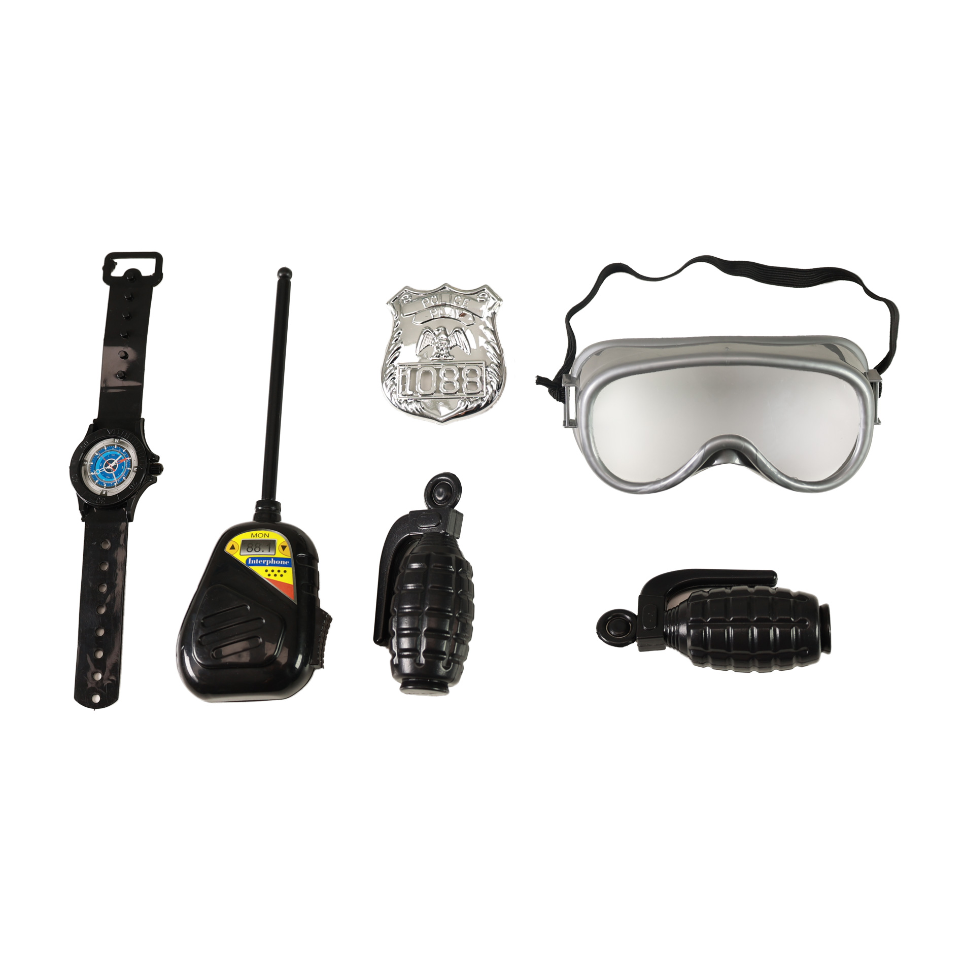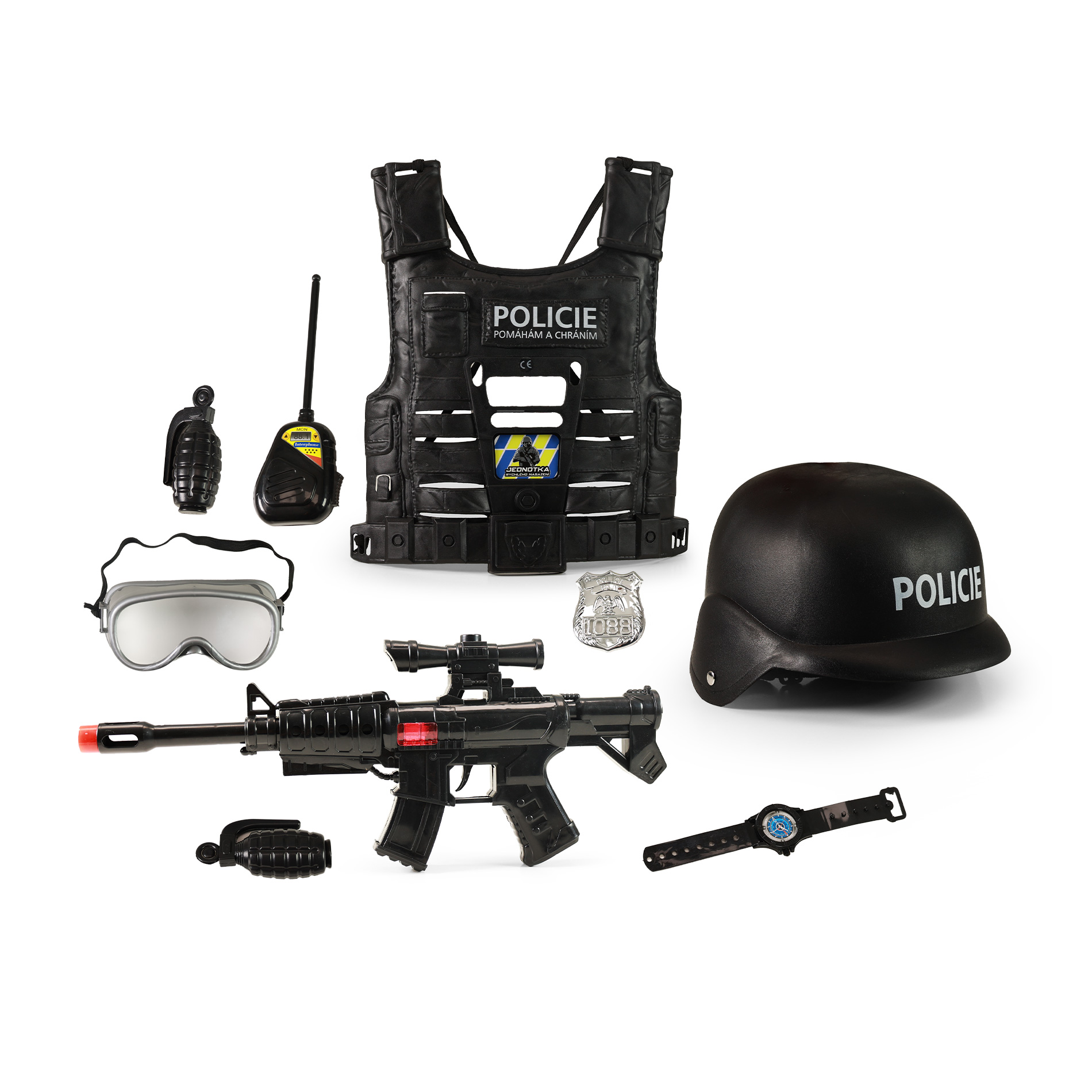 Profesionální sada pro opravdové policisty! Tento profi set obsahuje samopal, ochrannou vestu, granát, vysílačku, hodinky, odznak, brýle a helmu. Vše je vyrobeno z plastu. Zažij opravdovou zásahovou akci!