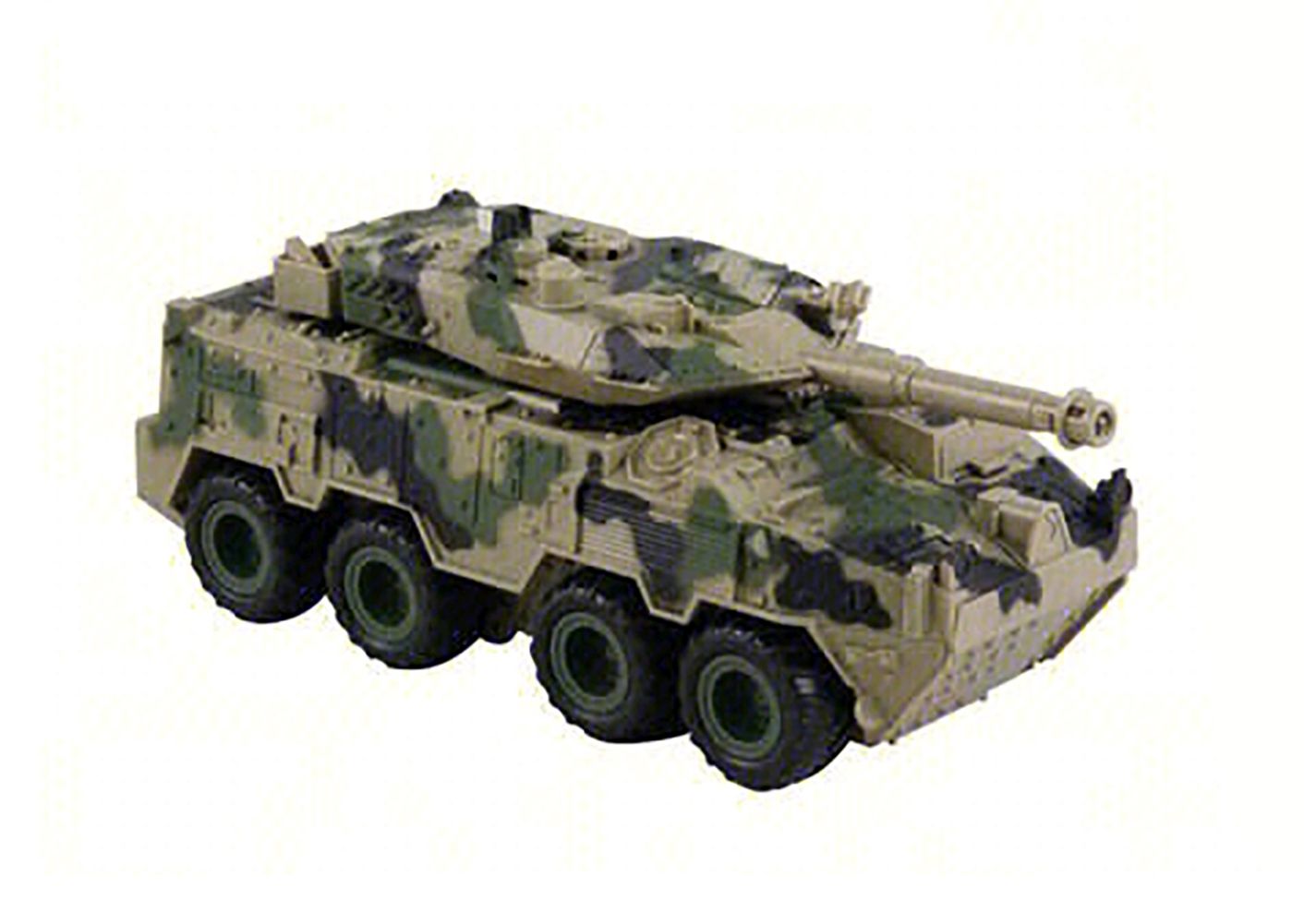 Vojenské vozidlo. Rozměry 25x11x10 cm. Na setrvačník. Světelné a zvukové efekty. 3xAG13 baterie součástí.