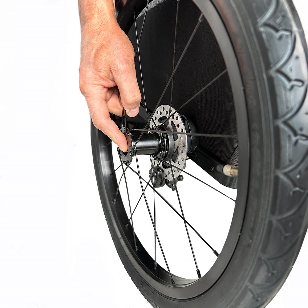 Bezpečnostní brzda – kotoučová brzda ovládaná z rukojeti zajišťuje bezpečnou jízdu i při běhu.