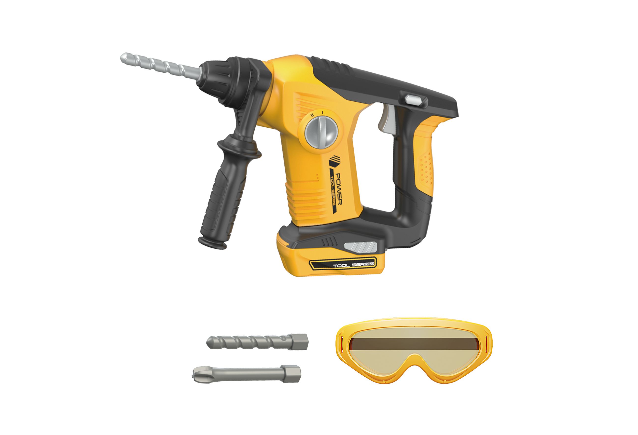 Vrtačka. Rozměry 32,5x7,5x23,5 cm. Součástí vrtačka, 1 vrták, 3 šroubováky, ochranné brýle, pravítko. Světelné efekty. 3xAA baterie nejsou součástí. Přepínač normálního a zpětného chodu nad rukojetí. Nastavení 2 rychlostí otočným přepínačem.