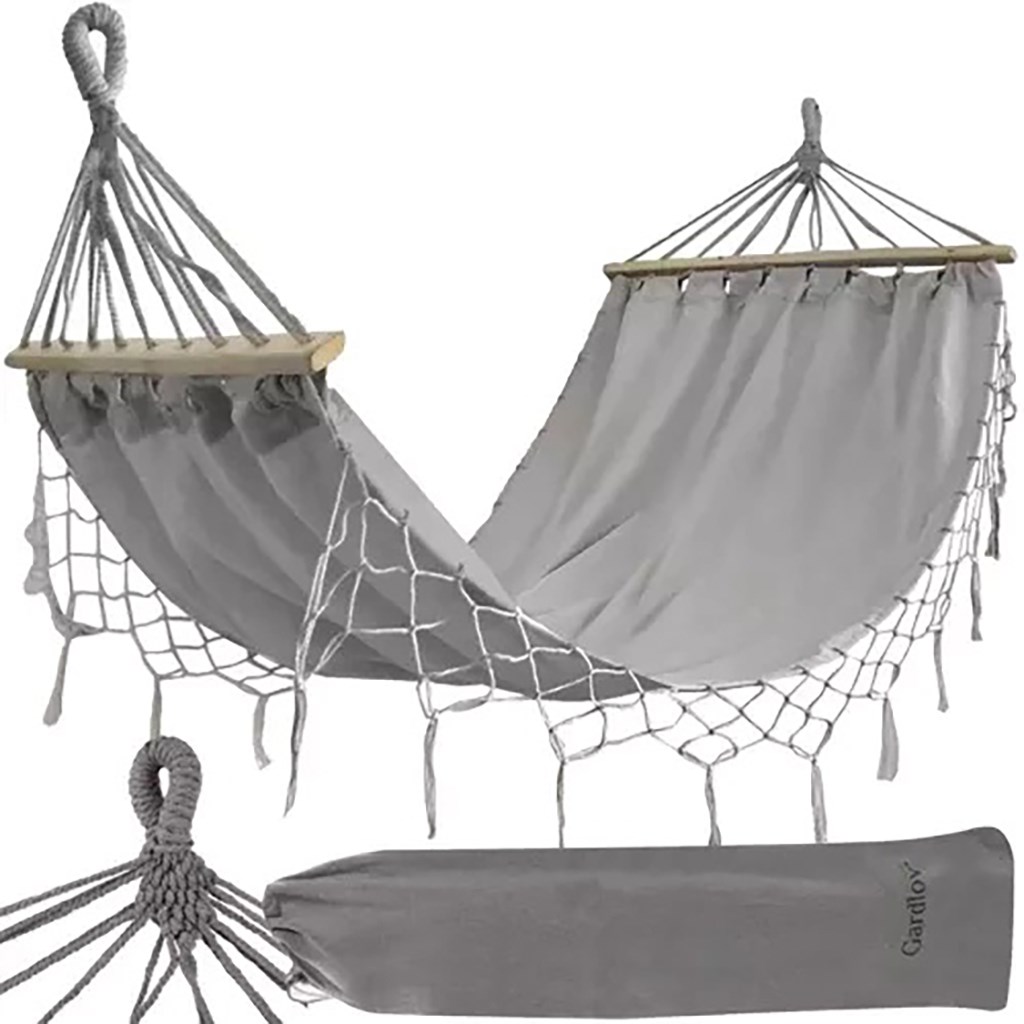 POHODLNÝ RELAX – Tento mimořádně pohodlný a praktický hamak je ideální pro odpočinek na zahradě, terase, balkonu i doma. Chcete ležet podélně nebo napříč? V houpací síti GARDLOV je to vždy pohodlné a příjemné.