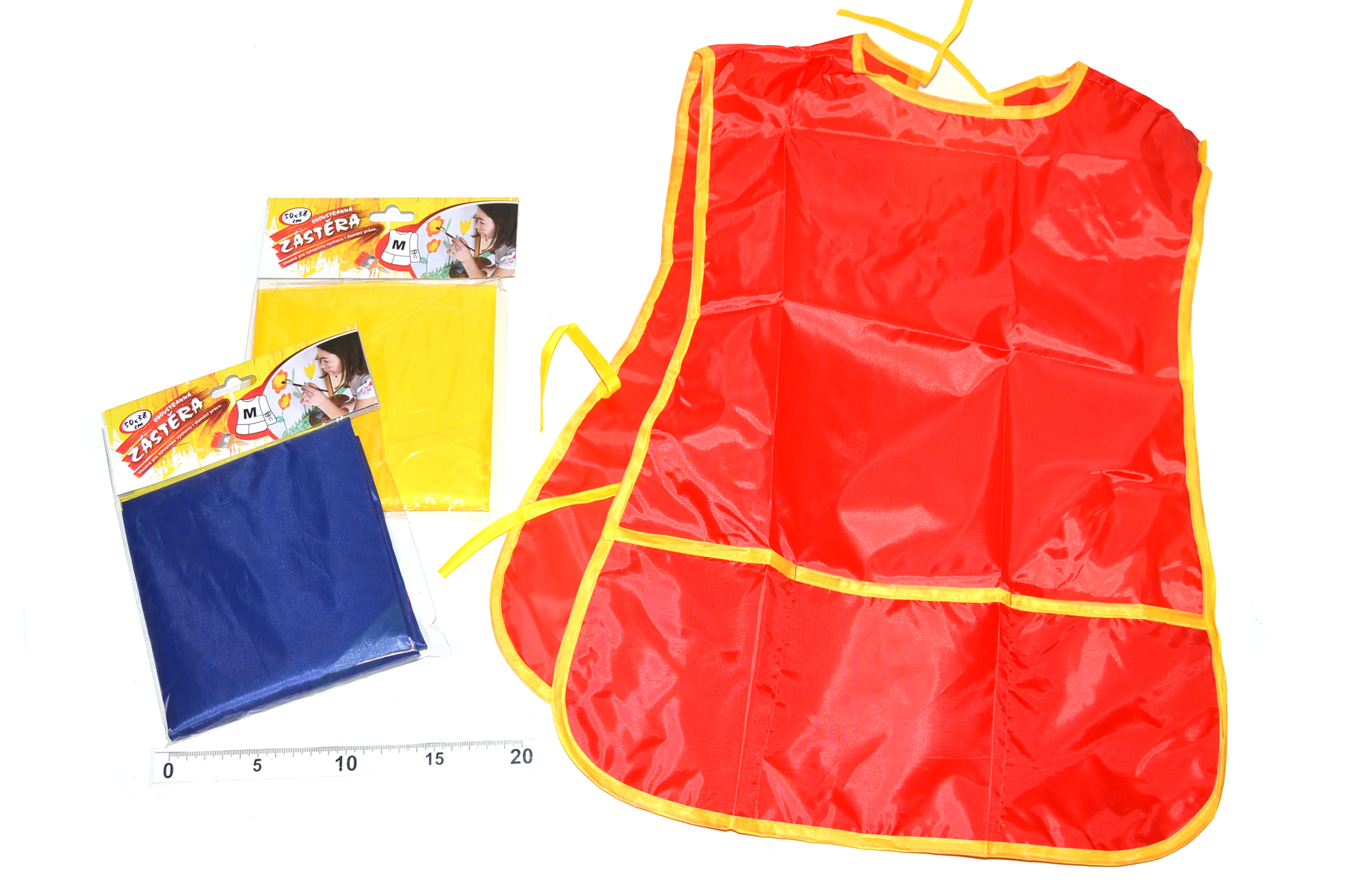 Oboustranná zástěrka na výtvarnou výchovu má zavazování v pase, na přední části má 3 kapsičky. Už žádné ušpiněné trička ani kalhoty při malování vašich ratolestí.