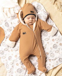 Roztomilý stylový a praktický zimní overálek s kapucí a oušky Nicol Miki pro miminka. Každé miminko v něm bude naprosto úchvatné a v pohodlí teploučka. Je vyrobený z kvalitní látky, která je velmi příjemná na dotek. Materiál si po dlouhou dobu zachovává svůj původní tvar. Overálek je podšitý z hřejivého materiálu tzv. Wellsoftu. Rukávky lze ohrnout a tím vynikne hřejivá podšívka. Boční zapínání po celé délce na zip usnadní oblékání. Složení: vrchní materiál: 95% bavlna, 5% elastan, podšívka 90% polyester, 10% bavlna- typ welsoft. Ideální pro miminka na zimu a podzim.
