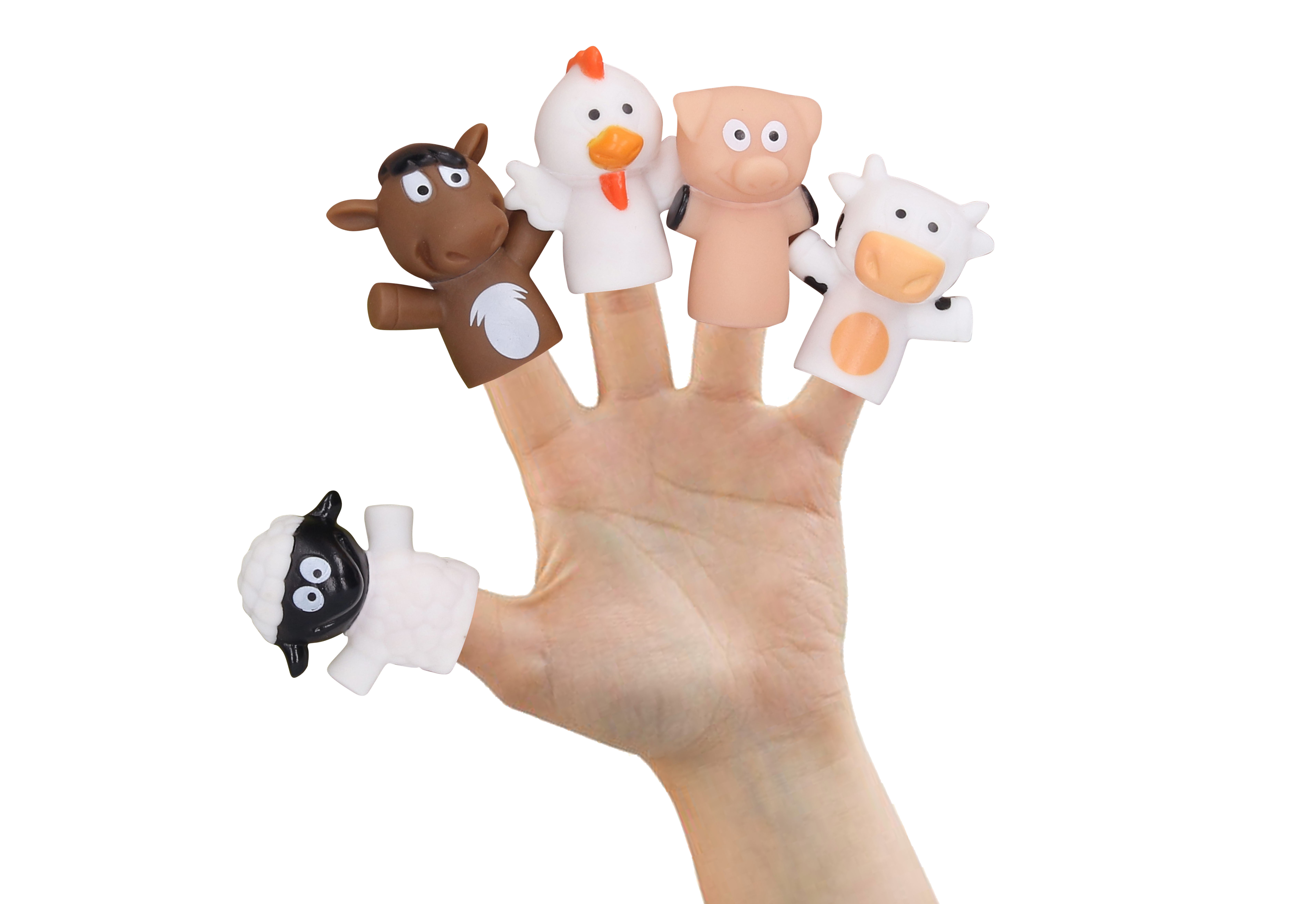 Maňásci v podobě gumových zvířátek jistě potěší a vykouzlí úsměv na tváři každému dítěti. S prstovými zvířátky si užijete spoustu legrace. Můžete si hrát na farmu s domácími zvířátky.